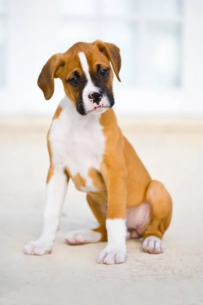 Boxers boast a sleek, short coat with tight skin, accentuating their athletic bodies. They come in fawn or brindle colors, occasionally with white markings. Fawn ranges from light tan to mahogany, while brindle displays striking black stripes on a fawn background. White markings should not cover more than one-third of the coat, and excessive white is discouraged due to potential health issues like skin cancer and deafness.